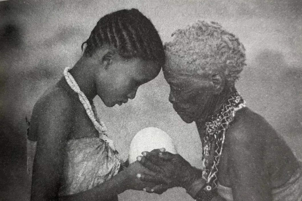 图8.3 祖母将一个鸵鸟蛋交到昆桑族少女手中