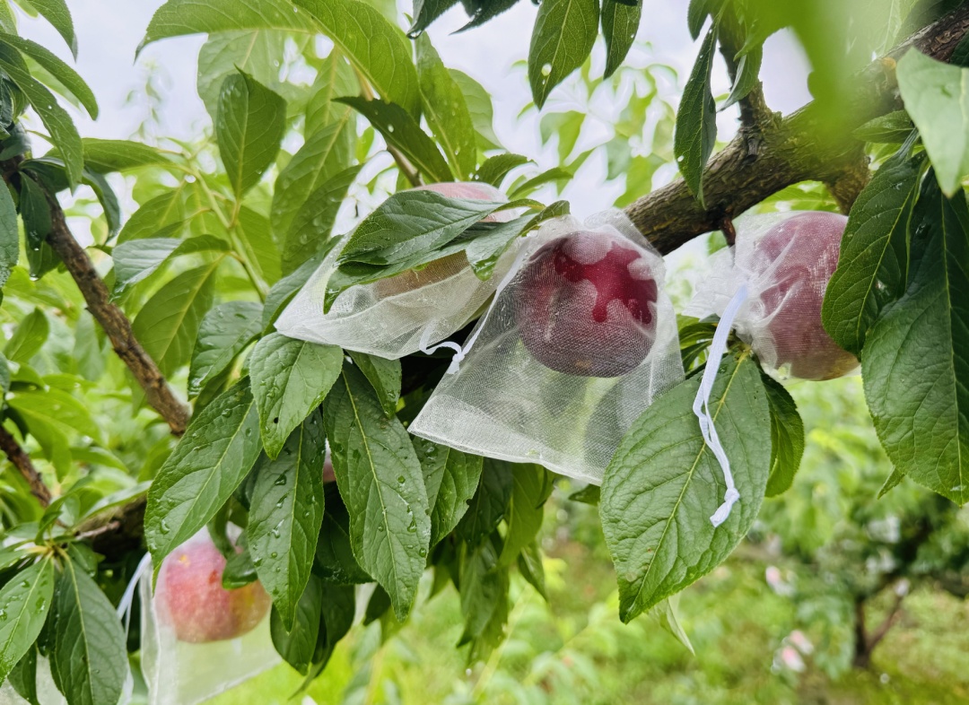 除了全熟的槜李,七成熟的槜李肉质厚实、酸甜可口,是开胃消食的佳品。为了提高产量,槜李成熟前,果实会被套上保护袋,以防虫食鸟啄。据介绍,该合作社的槜李产量约为2000斤左右。