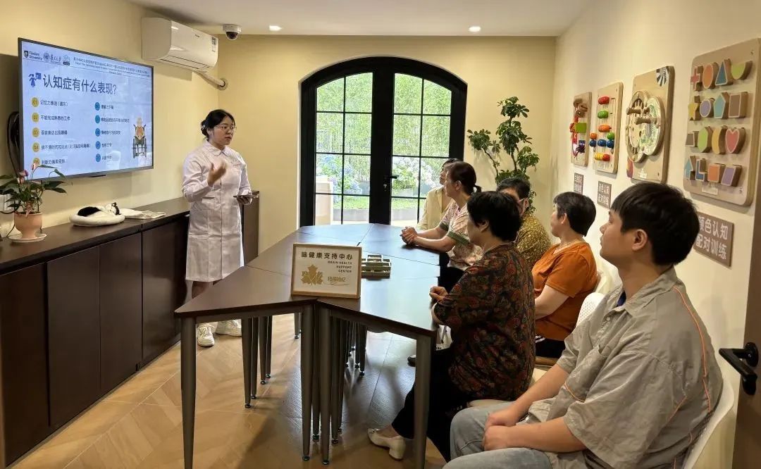 开业当天,居民们在这里包粽子、学烘焙,还能参与到认知症科普讲座,通过VR眼镜体验认知障碍康复训练。“这里除了吃饭,还能做认知障碍游戏,帮助我们年纪大的人锻炼大脑。”居民对武康社区食堂的多功能赞许有加。这些非药物干预的训练,让更多居民在享受生活的同时,增强对认知障碍的认知与预防。