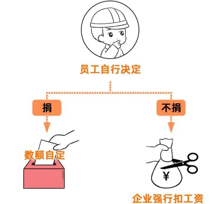 《公益事业捐赠法》第4条规定,捐赠应当是自愿和无偿的,禁止强行摊派或者变相摊派,不得以捐赠为名从事营利活动。任何用人单位都不得以捐款的名义强行扣除职工工资。