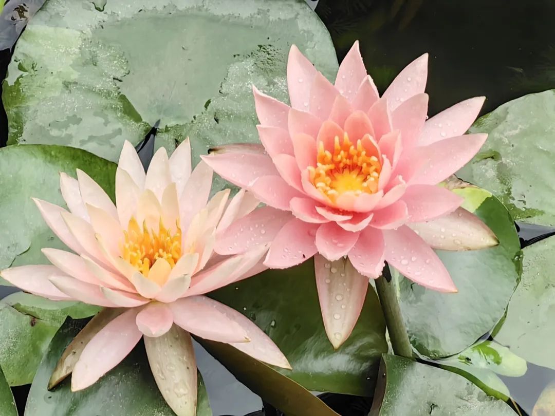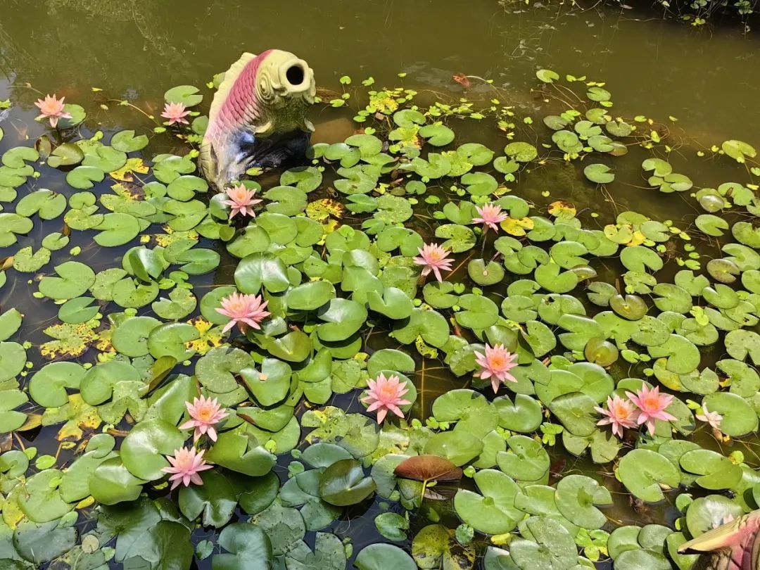 粉白、淡黄、桃红……各色睡莲争相绽放,微风轻拂湖面,吹皱一池繁花时,轻颤摇曳的睡莲与莲叶互相映衬、相辅相成,美得不可方物,为夏日增添了一道别样的风景。