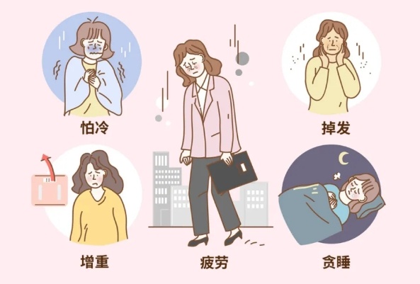 22岁的丁小姐三个月前外出旅游,由于太劳累,她的月经量突然减少,次月停经。随后,她又出现了脱发、疲乏无力、睡眠障碍、颈部肿胀不适等症状。不知所措的丁小姐前往医院就诊,经检查后被确诊为“桥本甲状腺炎伴甲减”。