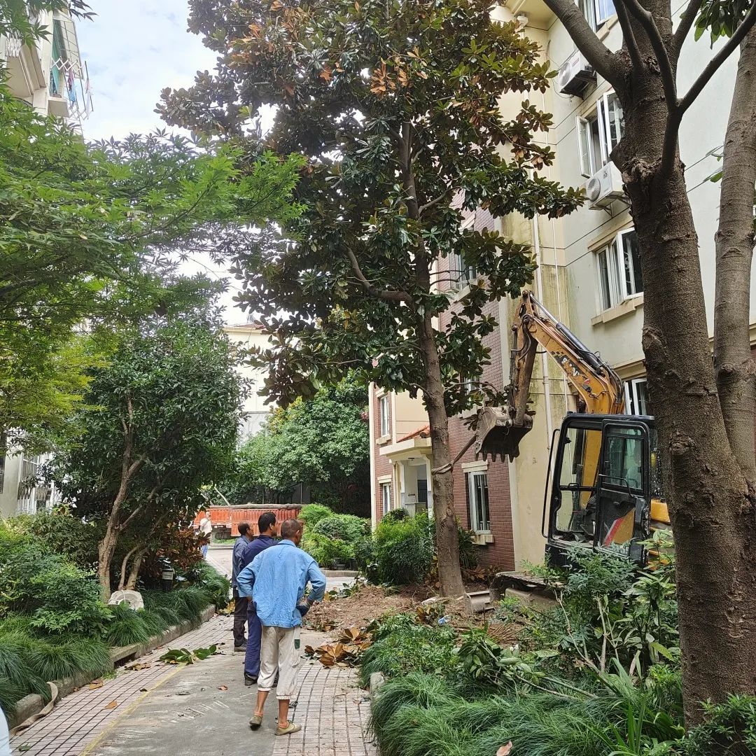为此,居委多次与相关部门沟通,并在零距离家园理事会上提出议题,街道邀请绿化管理部门来现场查看,最终确定了更适合树木生长的移栽区域。但是这棵广玉兰有四层楼这么高,移栽需要几万元的费用,费用从哪里来?为尽快推进项目开工,消除树木对加梯施工的影响,区房管局、街道办事处和加梯代建单位通过“三个一点”的方式妥善解决了移树经费的筹集。眼看电梯开工在即,各方发现还差一笔加梯资金未支付,原因是3号楼的一户居民原本同意出资,但是因为近期经济情况暂时不能支付,501的林先生知晓后当即表示为了加梯顺利开工他愿意垫付,以解燃眉之急。2023年8月16日挖土机开进了茂名坊小区,伴随着轰鸣的机器声,历时两年终于迎来了加梯开工,并于年底顺利完工。