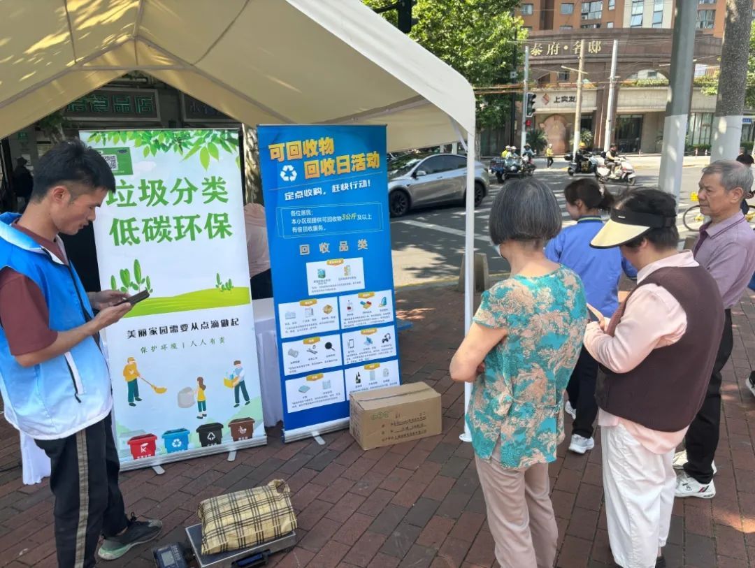 据悉,为贯彻落实市、区分减联办的部署安排,加强生活垃圾分类宣传,推动垃圾分类提质增效,石门二路街道坚持党建引领,联合可回收物服务主体企业、居委干部、社区志愿者等,持续加强生活垃圾分类宣传工作,推广“沪尚回收”小程序的使用,进一步提高社区居民的分类投放便利度,为居民提供更加便捷的惠民回收服务。