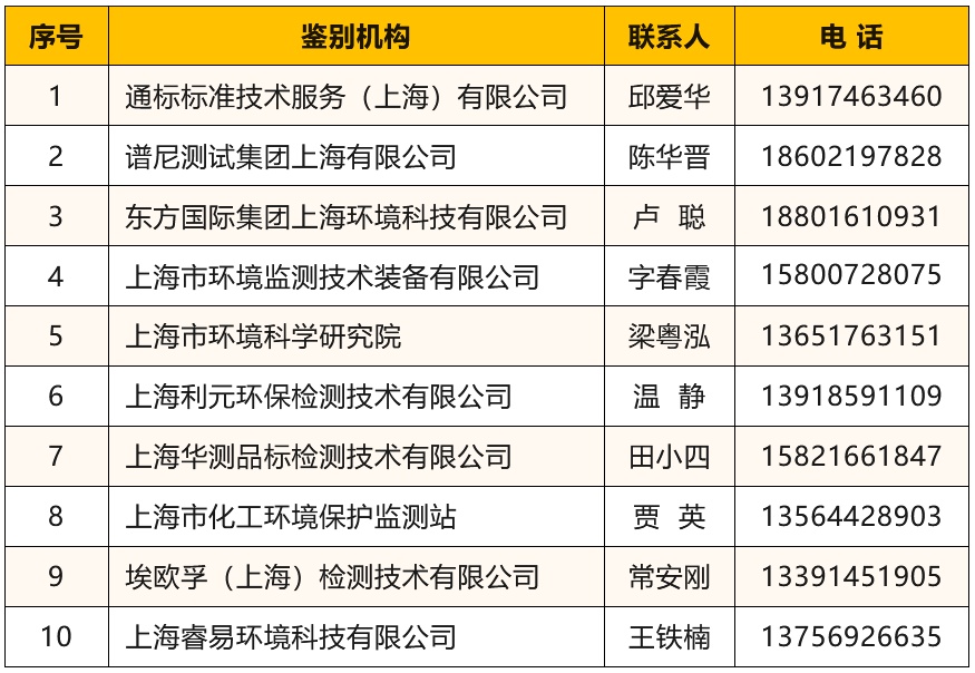 根据生态环境部《关于加强危险废物鉴别管理的通知》(环办固体函〔2021〕419号)及本市《关于加强上海市危险废物鉴别工作的通知》(沪环土〔2022〕41号)规定,现有10家单位的法人资格、CMA资质与检测能力、鉴别管理制度、社会化服务机构备案证明、监测机构信用风险等级及鉴别人员配置情况等重点内容符合我市危险废物鉴别单位管理要求,并在“全国危险废物鉴别信息公开服务平台”进行注册,现予公布(见下表)↓