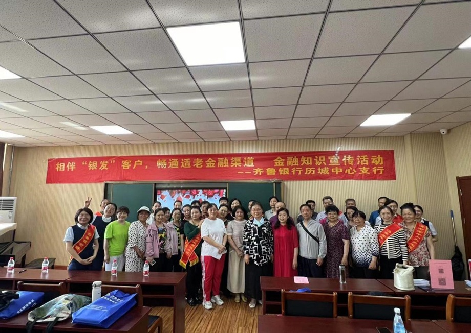 齐鲁银行济南大明湖支行线下立足厅堂宣传主阵地,通过举办客户沙龙活动,组织居民体验网点适老化服务成果,如无障碍通道、爱心座椅、血压计、“简爱版”手机银行、养老理财产品、老年人智慧医疗等设施及服务。滨州分行结合厅堂浓厚宣传氛围,设计趣味厅堂活动,邀请老年客户参与填写反诈骗有奖答题问卷,为老年客户普及养老反诈知识教育,并举办客户沙龙活动,向办理业务的老年人耐心讲解养老诈骗“套路”手法及危害,帮助老年人提高法律意识和识骗防骗能力,提高老年人“免疫力”,筑牢诈骗“防护网”。