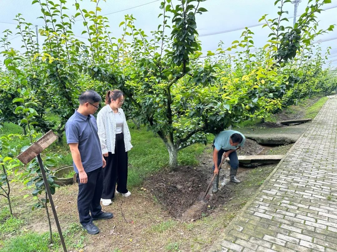 当前,正值奉贤黄桃、蜜梨等果树生长的关键时期,奉贤区农技中心在梅雨前期便给各街镇发布了加强入梅期间果树管理的通知,要求做好果园沟系清理、疏通果园沟系,保持三沟畅通,确保暴雨后果园能及时排水,防止积水对果树生长产生不利影响;对地表不平易积水的果园,要立即清理沟系及时排水;果园内积水排出去之后,及时进行中耕松土,促进根系呼吸。此外,还要求加强病虫害防治,及时清理纸袋、落果和断枝,并集中销毁;天晴后喷一次杀虫、防病药剂,重点防治穿孔病、炭疽病和褐腐病;积水后作物根系会有所受损,影响营养吸收,应薄肥勤施,也可采用喷施氨基酸叶面肥提高果树抗性,提升果品质量。