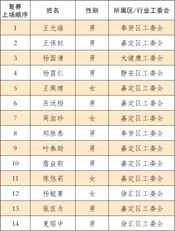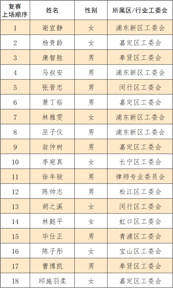 复赛50强晋级名单