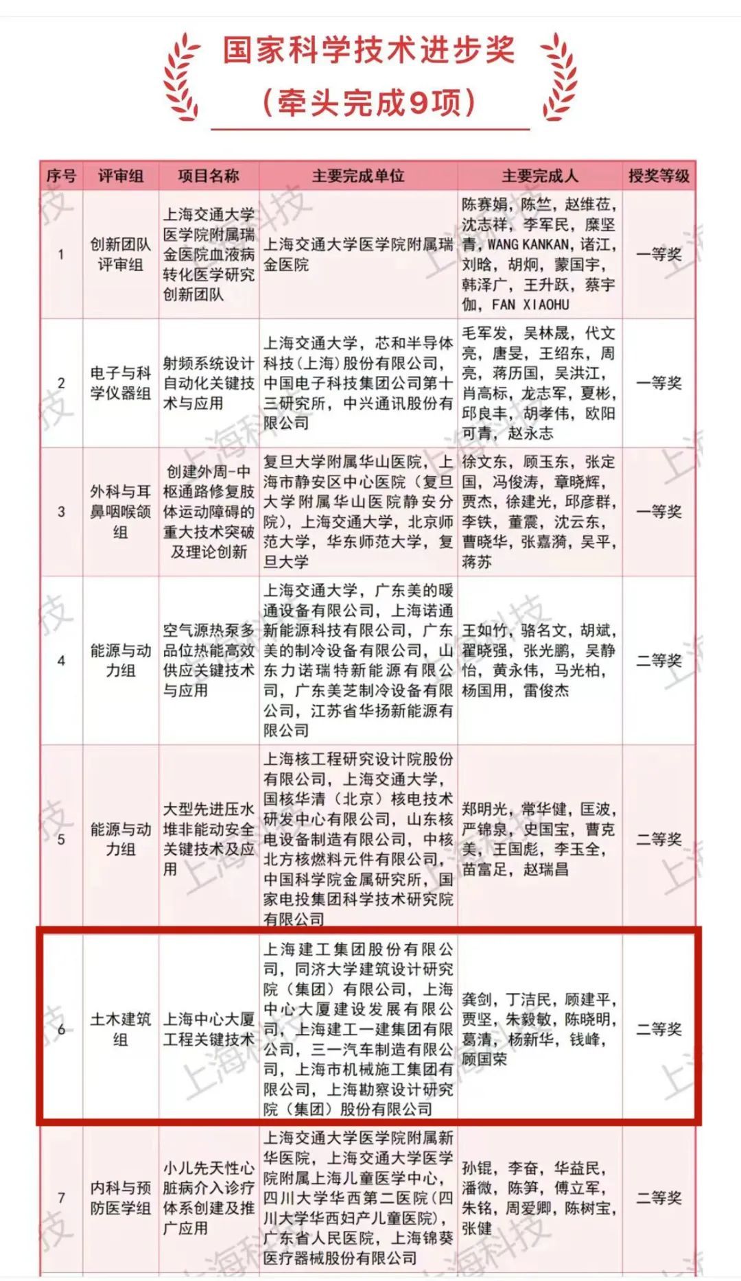 上海建工集团牵头(第一完成单位)项目《上海中心大厦工程关键技术》获得2023年度国家科学技术进步奖二等奖。