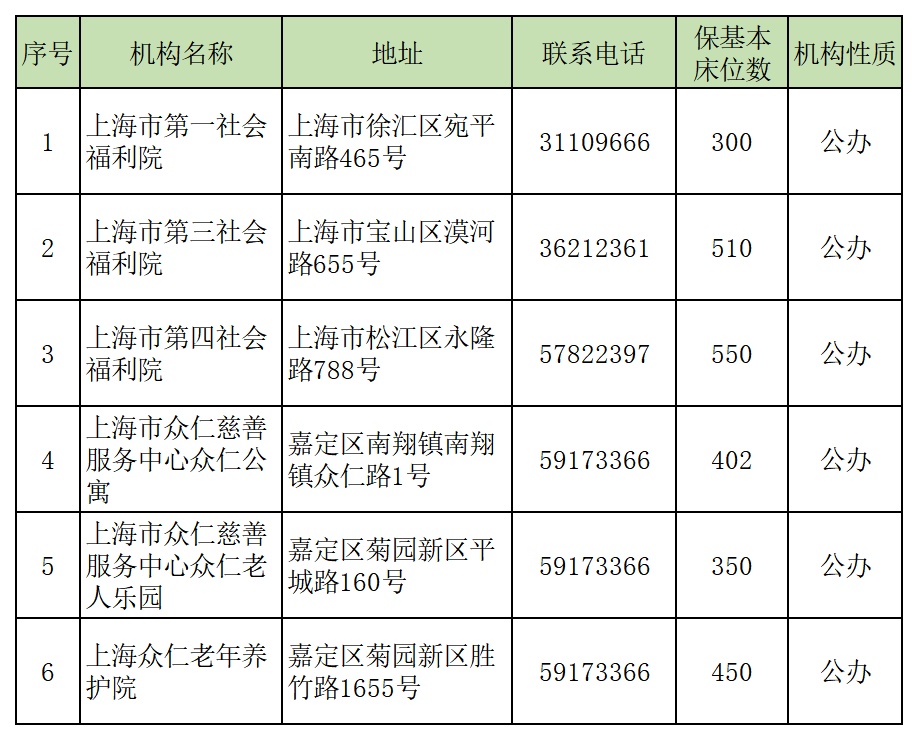 根据《上海市保基本养老机构(床位)管理办法》(沪民规〔2022〕15号)(点击查看)规定,现发布2024年全市保基本养老机构(床位)名单,详见↓