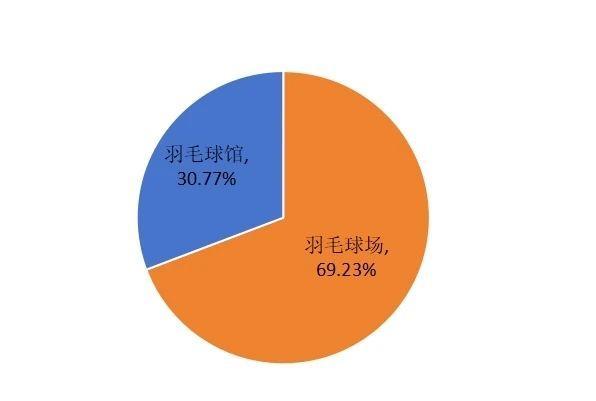 全区羽毛球场地26个,场地面积1.04万平方米。其中:室内羽毛球馆8个,占比30.77%;室外羽毛球场18个,占比69.23%。