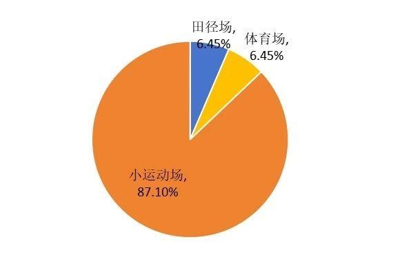 全区田径场地31个,场地面积104,572平方米。其中:田径场2个,占比6.45%;小运动场27个,占比87.10%;其他田径场地2个,占比6.45%。
