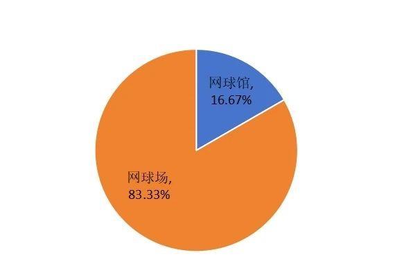 全区网球场地30个,场地面积1.94万平方米。其中:室外网球场25个,占比83.33%;室内网球馆5个,占比16.67%。