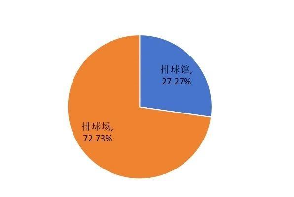 全区排球场地11个,场地面积5,824平方米。其中:室外排球场8个,占比72.73%;室内排球馆3个,占比27.27%。