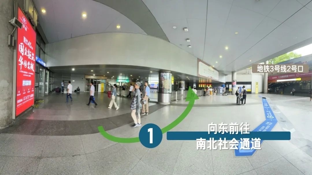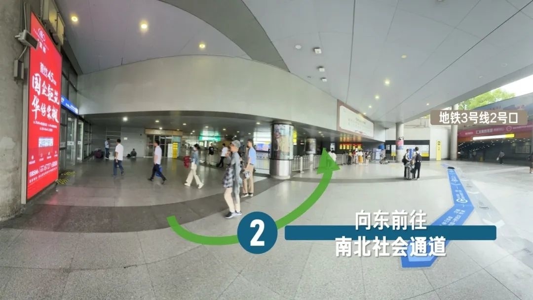 ·长途汽车换乘国铁列车 ·地铁3号线2号口出站换乘国铁列车 ·973路、机场七线等公交线路换乘国铁列车
