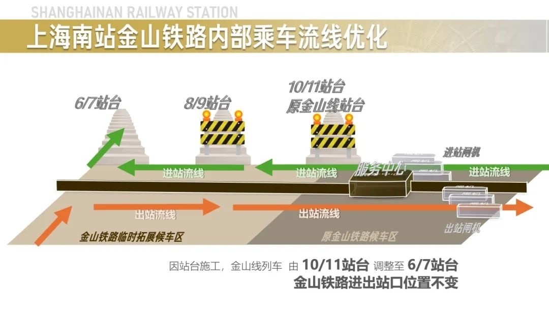 金山铁路的进出站口位置不变 站台调整至6/7站台 (点击图片,查看大图)