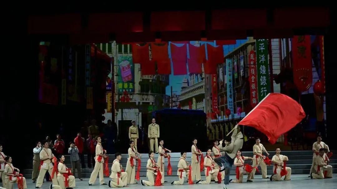 作为一部史实剧,舞美、服装、多媒体在尊重史实的前提下,提取一系列符合时代背景的元素将其呈现于舞台。配合背景LED屏所呈现的视幻空间,南京路、外滩、银行博物馆、外白渡桥、交响音乐厅等剧中重要场景一一呈现,通过舞台场景空间的延展,让剧情更具真实感。