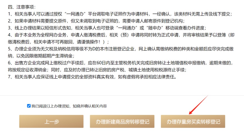 卖方通过上海市“一网通办”平台,在优化营商环境专栏中点击进入不动产登记“全网通”,选择“我是企业”即可发起“企业间非居住不动产转移登记全程网办”预申请,在线提交不动产登记材料后,买方登录可查看确认该申请并补充材料或信息。