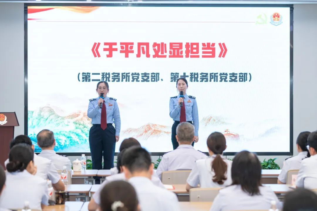 崇明区税务局举办庆祝中国共产党成立103周年活动,活动以“税韵心声 党旗飘扬”为主题,通过区局党委书记上党课、重温入党誓词、颁发“光荣在党50年”纪念章等环节,展现党员干部的精神风貌和时代风采,切实提升党组织的凝聚力、组织力和战斗力。