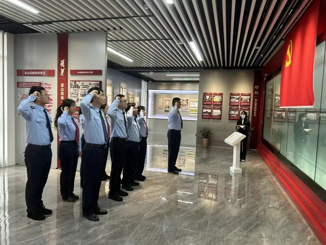 金山区税务局组织预备党员前往金山区党群服务中心开展集中宣誓活动,通过活动加强党性修养,上好入党第一课,激发干事创业热情,在推进中国式现代化税务实践中展现青春风采。