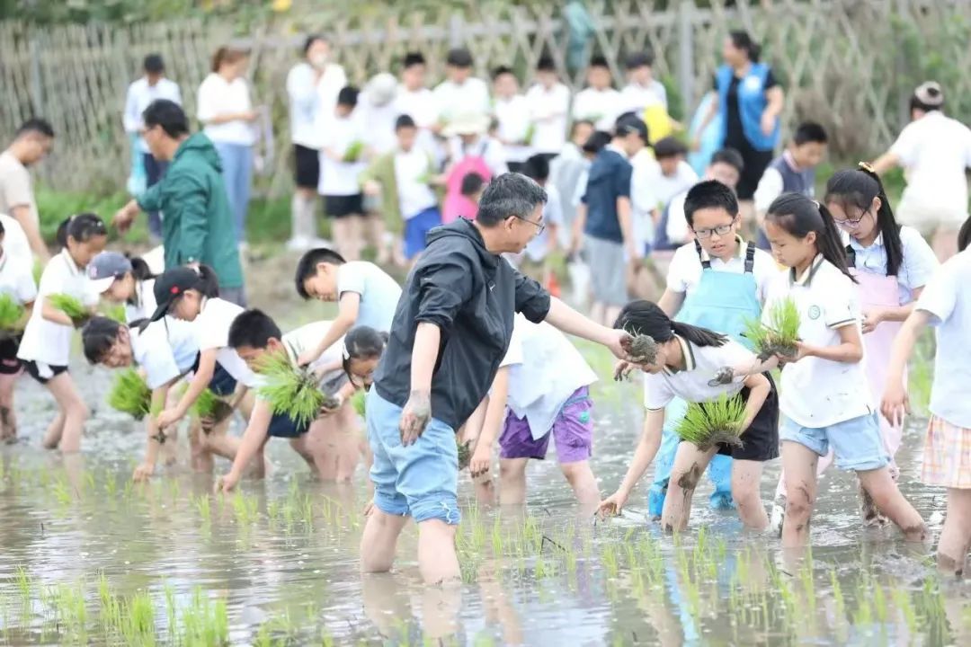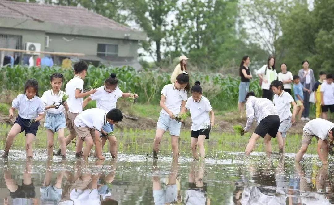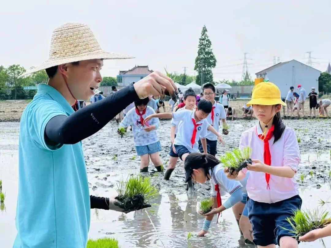“原来大米是这样来的,插秧可太不容易了,我以后再也不浪费粮食了。” 近日,马桥镇的小学生们走进田间课堂,撸起袖子、卷起裤腿,下田体验“面朝黄土背朝天”的农耕劳作。走!一起去看看! 亲近自然 播种希望 享自然之趣,悟农耕之乐!马桥强恕学校五年级导师和家长志愿者们带领学生走出校园,来到漫农·自然童伴基地,感受农耕的乐趣。 在老师的指导下,孩子们有模有样地开始插秧。弯腰、拆秧、插秧、固定……几个重复的动作,不一会儿便把兴致勃勃的孩子们累得满头大汗,但是同学们仍然兴致不减,忙得不亦乐乎。 马桥文来外国语小学四年级的300多名学生也化身“小稻农”,抢抓农时忙插秧。“小稻农”们脱掉鞋袜,卷起裤腿,迫不及待地走下水田。一拿一放,一起一弯,很快一株株秧苗整齐地挺立在田间,宛如一幅美丽的田园风景画。 插秧是农耕文化的一部分,从课堂到田间,从书本到实践,马桥学子身体力行,知农事、学农耕、惜农食,让热爱劳动、珍惜粮食的种子,扎根心田…… 从人工插秧到无人农场 香软爽口的大米是马桥人餐桌上的一道主食,耕田、插秧、割稻……辛勤劳作,哺育马桥这片热土上的一代又一代马桥人。 90年代以前的马桥,人工插秧较为普遍。人工插秧的优点是返青快,缺点则是耗费人工,效率低。 人工插秧过程中,农民一手托住一把秧苗,另一只手分出3—4根秧苗,手指掐住秧苗根部,根部朝下,靠手指力量把根部插入泥土中。 如今,马桥镇积极推动都市现代农业发展,积极打造无人农场。在现有农业机械上加装无人化和自动导航设备,完成耕、种、管、收的农机作业。截至目前,全镇无人农场建设面积约1600亩,机插秧从5月下旬至6月下旬已全部结束。 在无人农场,无人驾驶插秧机可以利用北斗卫星导航系统和物联网技术,实现田间自动插秧、智能避障等全套无人作业的农业机械;无人机施肥则是利用无人机搭载肥料容器和喷洒装置,通过预设的飞行路线和参数设置,对农田进行精准施肥作业。 人工插秧小贴士 1.插秧的深度不宜太深,一般到根茎的颈部即可,插秧深度过深可能会导致秧苗的返青速度较慢以及分蘖速度较晚。 2.秧苗要插直,且行距、穴距要规整。 3.每穴插入的秧苗要确保均匀。 4.插秧的深浅度保持一致,同时不能插断头秧等不良秧苗。 5.进行大面积插秧的时候要提前制定周密的计划(起秧、运秧、插秧等工序要配合好),以防中午晒秧或者插隔夜秧。 6.插秧后要及时覆水,水深以不淹没秧心为准,以防止秧苗因受到日晒而萎蔫。