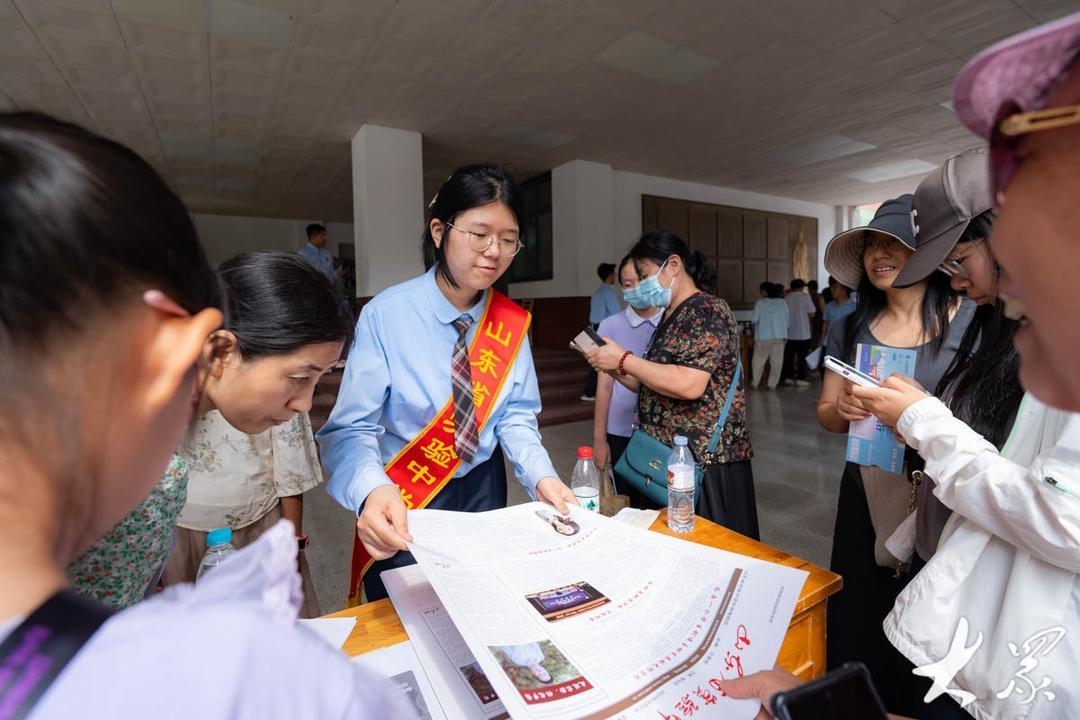 7月1日,山东省实验中学2024年校园开放日活动举行。据了解,开放日期间学校面向全社会开放。在省实验中学中心校区,小学生、初中生们前来参观校园,校友们则借此机会回到母校重温高中时光。