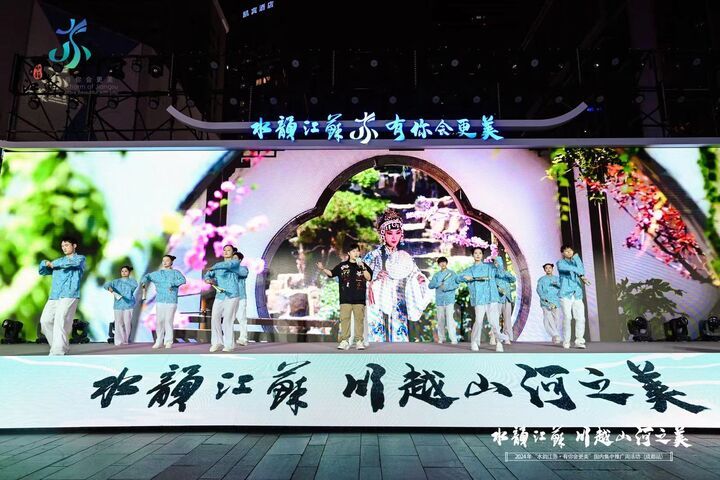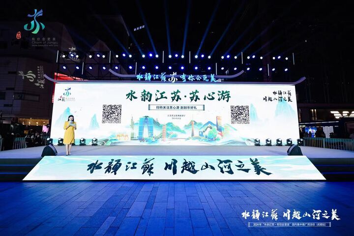 6月29日晚,“水韵江苏 ‘川’越山河之美”——2024年“水韵江苏·有你会更美”国内集中推广周在成都太古里商圈红星路广场举办推介活动。
