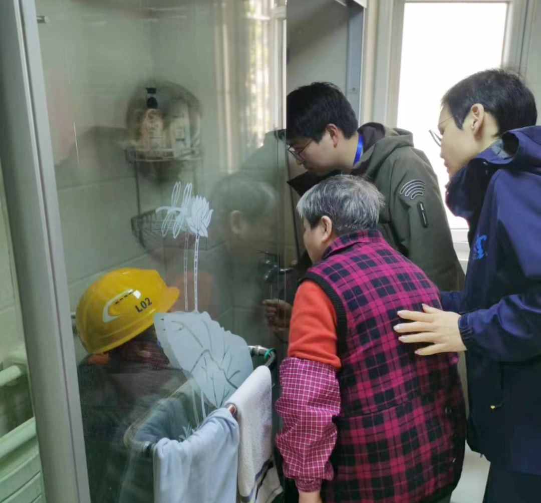 居民蔡阿姨在洗澡时不慎打滑差点摔倒,淋浴间扶手因此受损,正当她为修理问题发愁时,社区工作人员及时出现,迅速修好了扶手。看着修理坚固的扶手,蔡阿姨竖起了大拇指,这是对社区贴心服务最直接的认可。