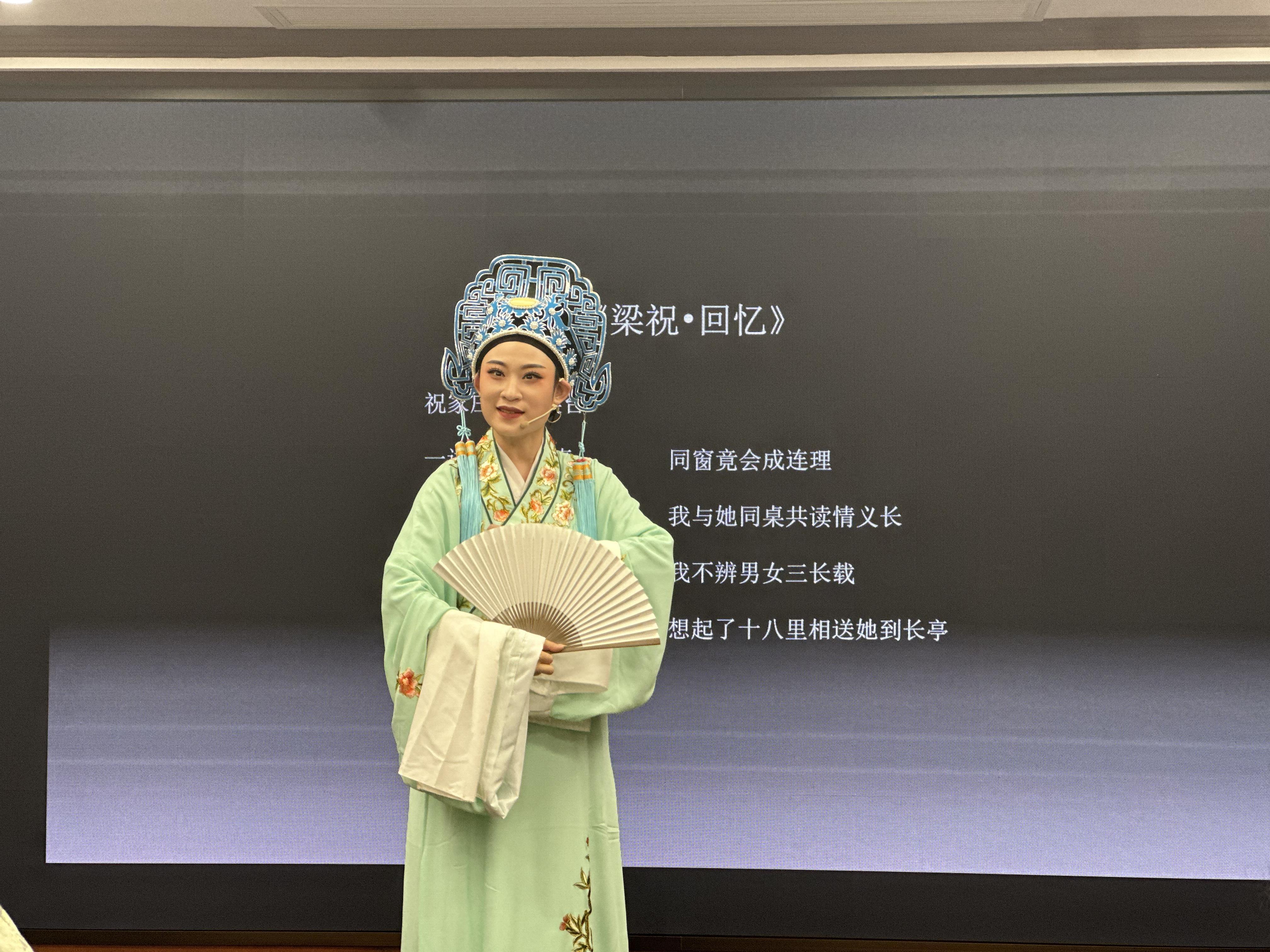 演讲中,王柔桑还表演了越剧选段,与现场观众进行互动交流,赢得了阵阵掌声。