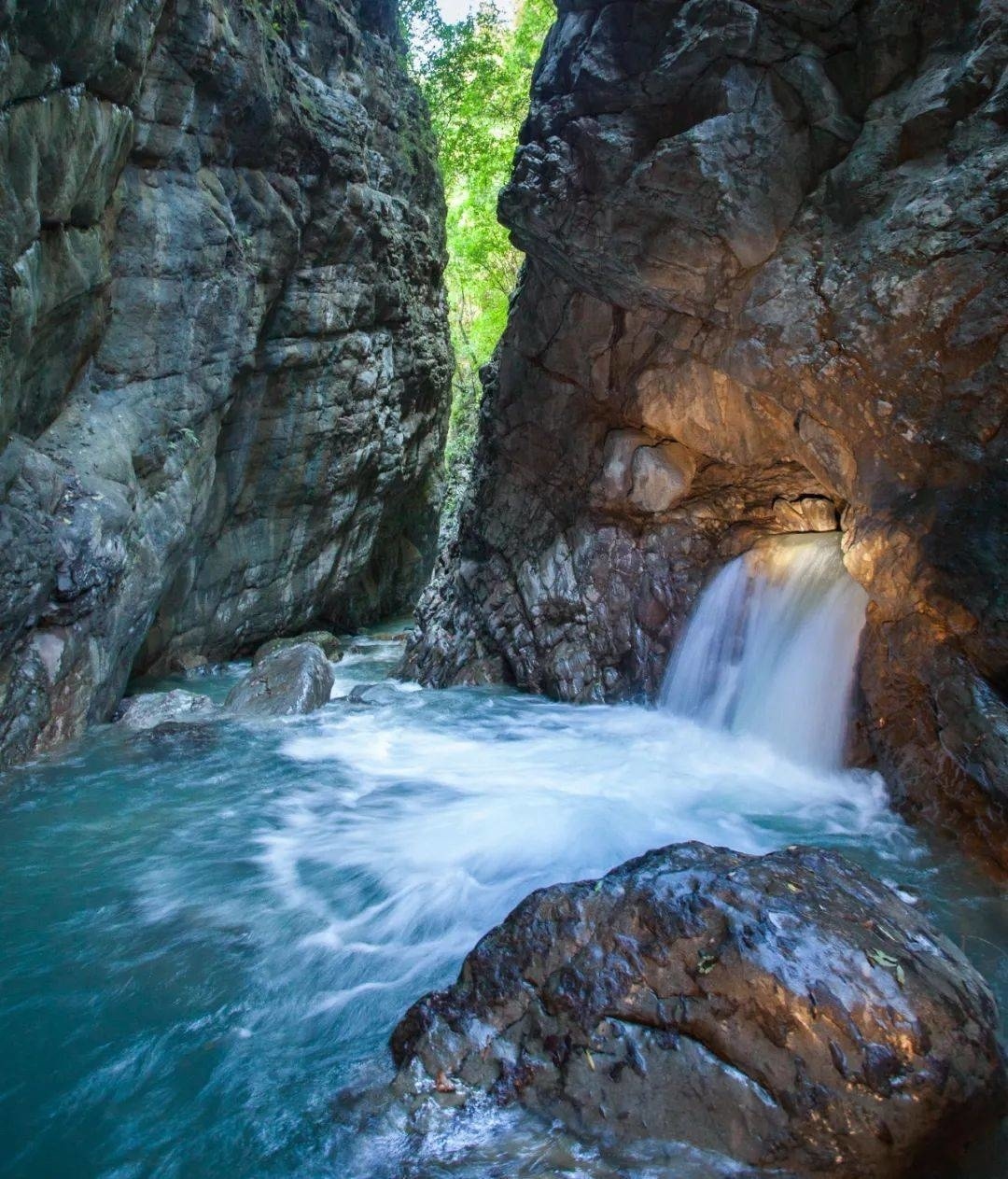 注:此谷为巴山大峡谷之精华景点,十里寒溪,奔涧岀谷,兼以林深箐密,堪称幽秀奇险。