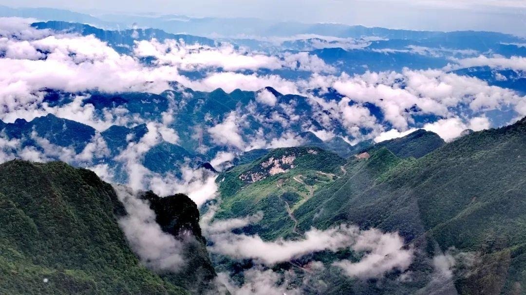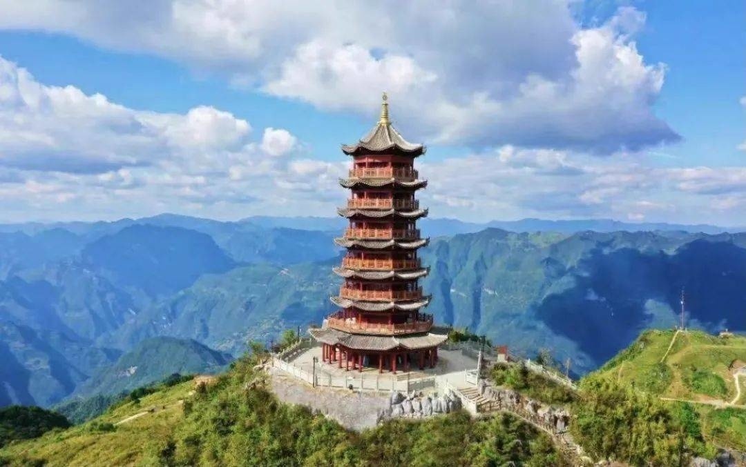 注:罗盘顶为巴山大峡谷最高顶,海拔2480米,状元楼筑于峰尖,为登览胜迹。