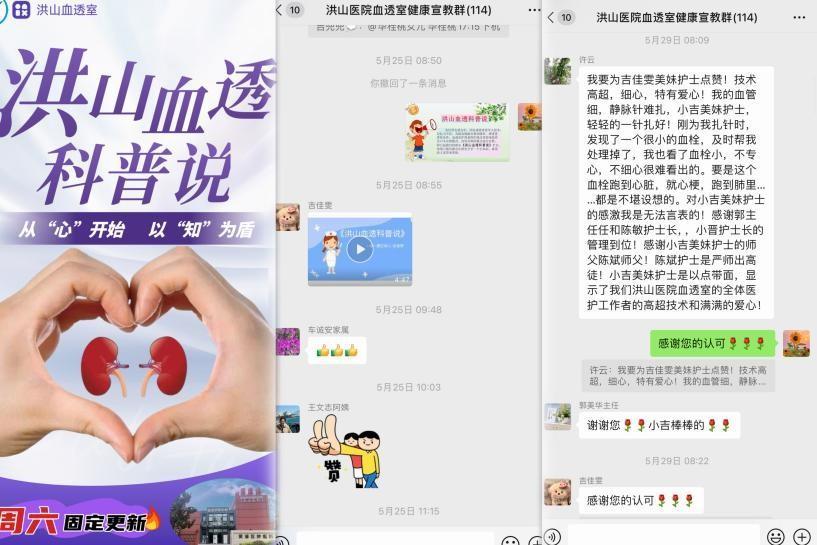 血透治疗,对于许多患者来说,既是一次挑战也是一场考验,尤其是老年血透患者,他们的记忆力减退,需要更多的关爱与指导。为此,医院改变了传统的口头宣教、纸质宣教模式,推出了“洪山血透科普说”音频栏目。以患者喜闻乐见的音频形式呈现,每周六固定更新,内容涵盖血透知识、营养饮食、心理调适等多个方面,以音频的形式向患者传递健康知识。同时,医院还设立了在线问答区,由专业医务人员为患者在线答疑解惑,这种贴心的服务方式,不仅增强了医患之间的互动性和实用性,更让患者感受到了真诚与关心。