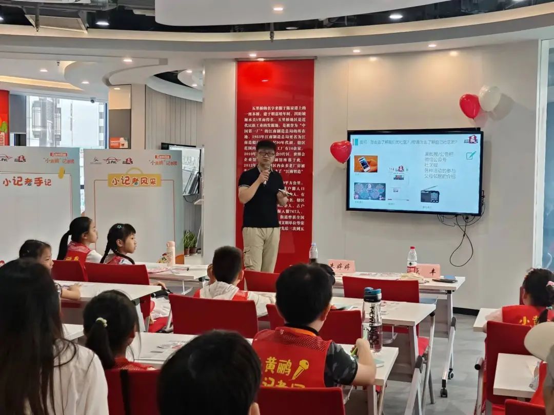 为进一步培养孩子的家国情怀,践行社会主义核心价值观,丰富青少年社区实践,培育践行新时代文明新风,今年暑假,五里桥街道联合新闻晨报社区传媒开展“小黄鹂”记者团培训活动,为辖区少年儿童搭建起一个媒体、学校、社会、家庭四位一体的新闻实践平台。“小黄鹂”,一方面寓意着希望孩子们在黄浦区,在五里桥街道这个大家庭里一起分享快乐与收获,携手共进,共同成长;另一方面,也期盼他们能够像一只只活泼、可爱的黄鹂鸟,用敏锐的观察力和细腻的笔触,去捕捉社区的每一个精彩瞬间,传递悦耳动听的时代声音。