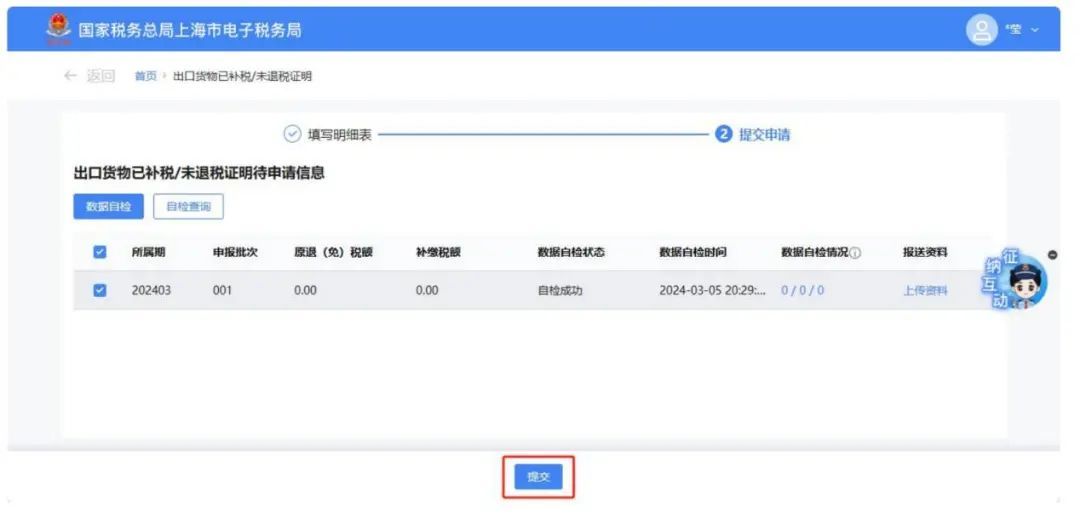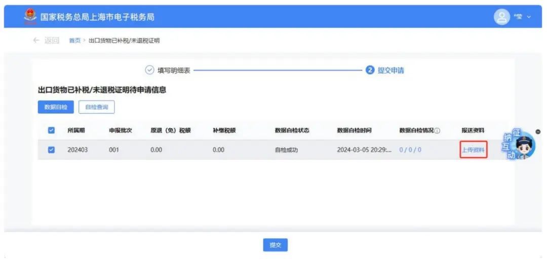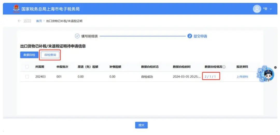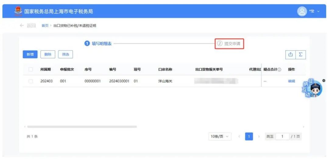 数据处理完毕后,点击【提交申请】按钮.