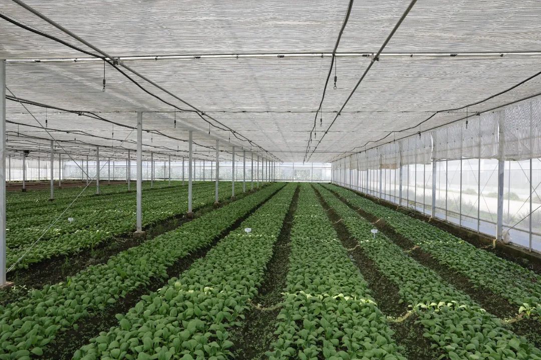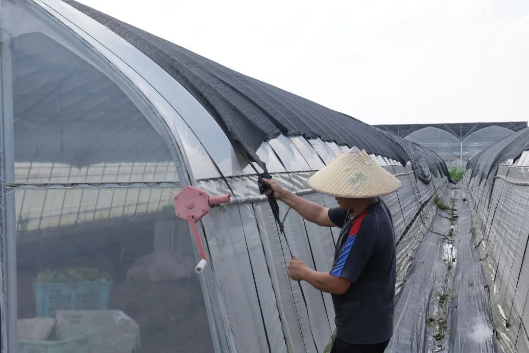 在外冈镇百蒂凯周泾蔬菜基地,芝麻菜、米苋等绿叶蔬菜长势良好,有了外遮阳、内保温系统、电动卷膜等设施,大棚内的气温明显降低不少。“我们生产过程中会用遮阴网的覆盖来减少太阳光照的强度,并在晚上进行浇水,确保产出,满足市场的需求。”基地负责人韩维仕说。