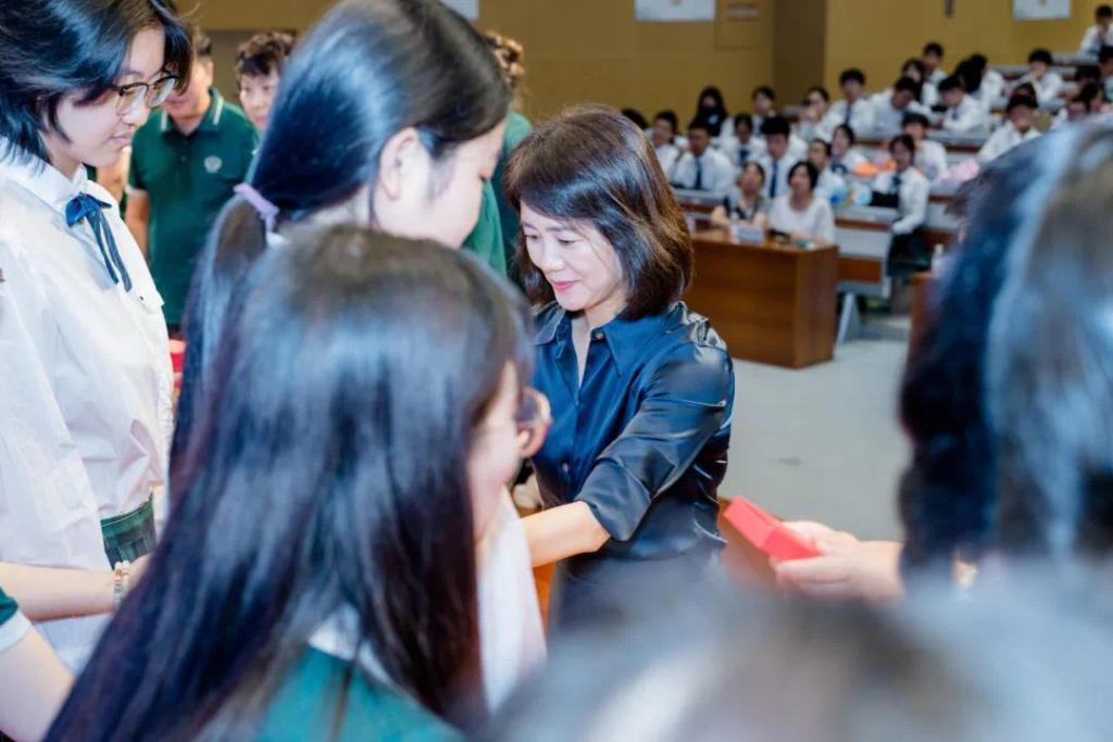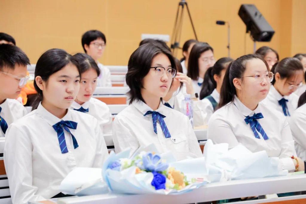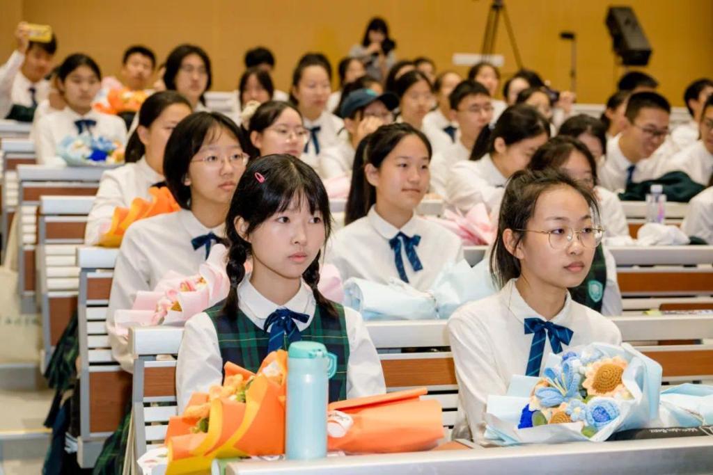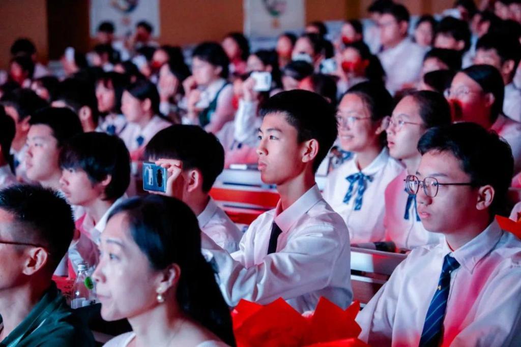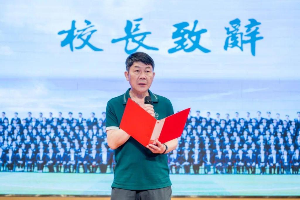 学生代表丁纪晓同学带领同学们回忆起这三年的过往,高标准的实验室、温馨宽敞的音乐教室、现代化的创客工厂;奋力拼搏的运动会、五花八门的研学活动、各显神通的合唱节、名梗频出的戏剧节……三年时光,不过短短一瞬。但校园四季,却胜过世间无数。他号召同学们怀揣着鸿鹄之志,牢记“好学力行 明志致远”的校训,为自己的人生点燃最绚丽的烟火。