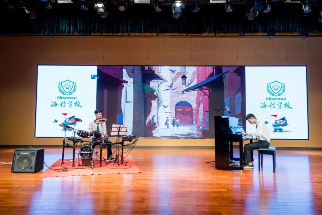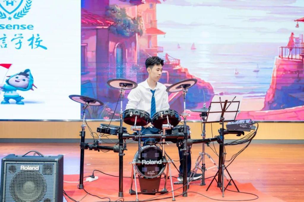 随着典礼的正式开始,师生的目光被舞台上学生们精心安排的乐器演奏所吸引。他们用熟练的指法和饱满的情感,演绎着充满活力的乐章,激昂的和弦与悠扬的旋律交织在一起,回荡在整个会场。随后的歌曲表演,学生们更是以动人的歌声,传递出他们对即将结束的校园生活的无限留恋和对未来的美好憧憬。