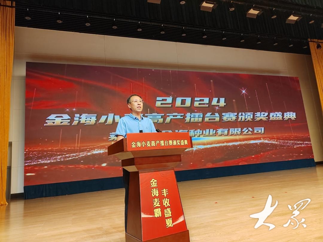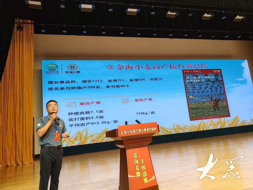 “为让高产品种加配套技术从试验田走向农户种植地,我们制定了‘第一届小麦高产擂台赛’方案,通过农户申报、种植管理、测产及评选等各环节的实施,取得了今天的可喜硕果。这项活动我们还会继续办下去,为国家粮食安全贡献一份力量。”金海种业董事长邓秀峰在会上介绍。