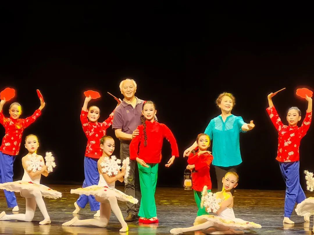 值得一提的是,著名舞蹈编导、78岁的魏芙老师登台与孩子们共舞了《东北妞妞》,著名芭蕾舞蹈表演艺术家、舞剧《白毛女》首任舞者石钟琴和凌桂明与孩子们同台共舞“白毛女”片段。当得知与自己同跳一支舞的小演员最小的只有8岁时,魏芙激动地说:“我第一次登台表演时也是8岁,但今天小朋友们能在这么高大上的舞台上演出,比我更幸福。”同时,魏芙对松江区少儿舞蹈发展寄予厚望,她说松江是上海之根,松江少儿舞蹈创作应该融入松江的人文情怀,打造专属松江的少儿舞蹈品牌。