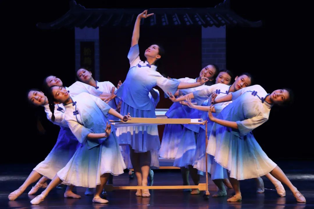 此次展演共三个篇章,表演了街舞、芭蕾舞、民族舞等多种舞蹈风格。当代舞《雨中曲》舞出了孩子们对国家的热爱和“强国有我”的坚定信念;古典舞《梦敦煌》和《夜绘上元》展现出了中华优秀传统文化的多元与魅力。最出彩的莫过于当代舞《丝丝松筠》,该剧以100年前“松筠女子职业学校”为背景,讲述了松江著名的顾绣传承人戴明教学习顾绣技法的故事。在非遗文化的牵引下,观众深刻领略到了穿越时空的艺术魅力。