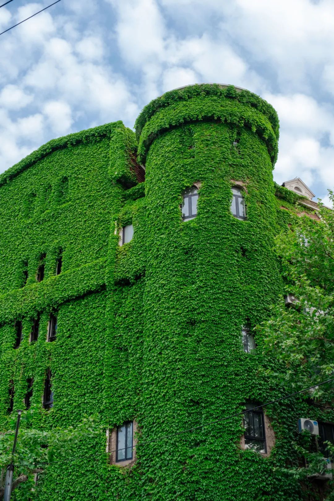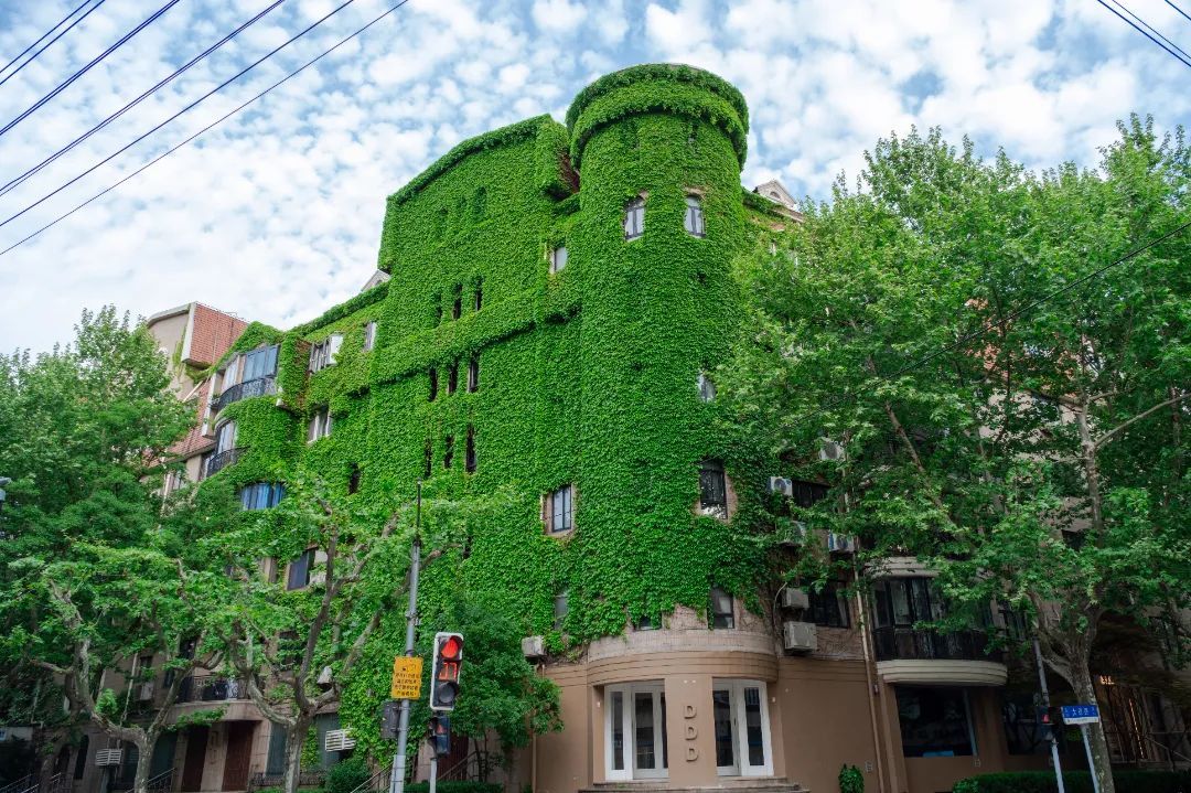 从地铁1号线衡山路站出站,沿着永嘉路步行约一公里,一幢形似抹茶蛋糕的“绿房子”豁然映入眼帘,这便是“网绿大楼”。夏日“网绿大楼”的爬山虎长势正盛,是拍照打卡的最佳期,大家可以站在街对角拍到大楼的全貌。由于建筑面西,有阳光的下午拍摄效果会更好,感兴趣的朋友别错过啦!