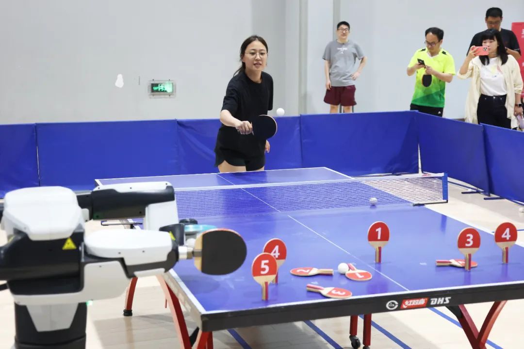 除了延续往届的竞赛项目,本次比赛还增加了智能乒乓球机器人挑战赛项目,丰富了赛事的趣味性、增加了活动的科技感、提高了选手的参与度。一位参加挑战赛的选手说:“我乒乓技术一般,以往这样的比赛我都是在场外当拉拉队的,这次听说有趣味挑战赛,我立即报名,没想到机器人发出的球还挺难接,相信如果长期有这样的机器人教练陪练,自己的水平一定会快速提升。”