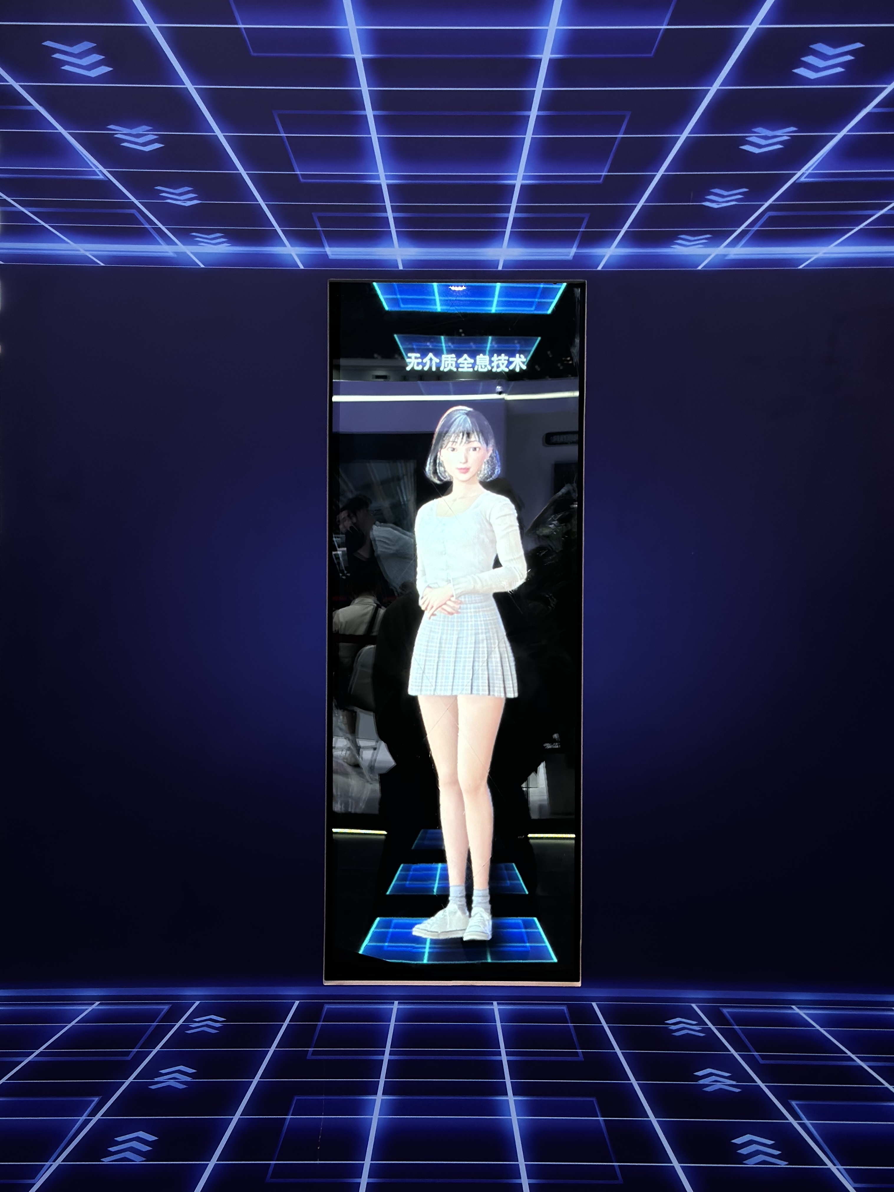 无介质全息AI机器人,融合AI智能技术,可在空中呈现立体全息迎宾机器人形象。