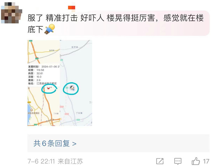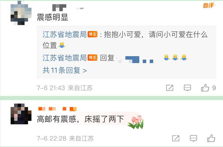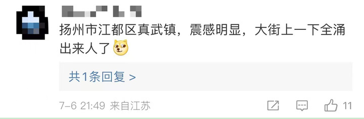 地震发生后,江都区真武镇、高邮市居民表示有震感。