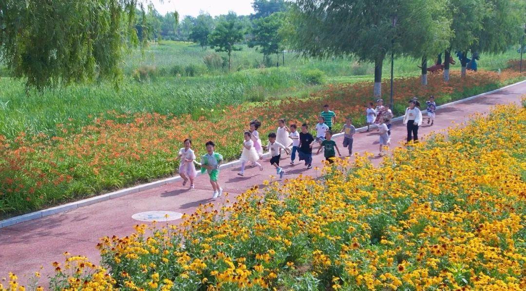 金花河湿地公园是威海五垒岛湾国家湿地公园的重要组成部分,规划面积112万平方米,兼具生态观光、休闲度假、科普教育等多种功能,依托优质的自然环境资源还布设了草莓熊、飞艇热气球、蝴蝶秋千等一批拍照打卡雕塑,是城市的“绿肺”、居民生活的“氧吧”。