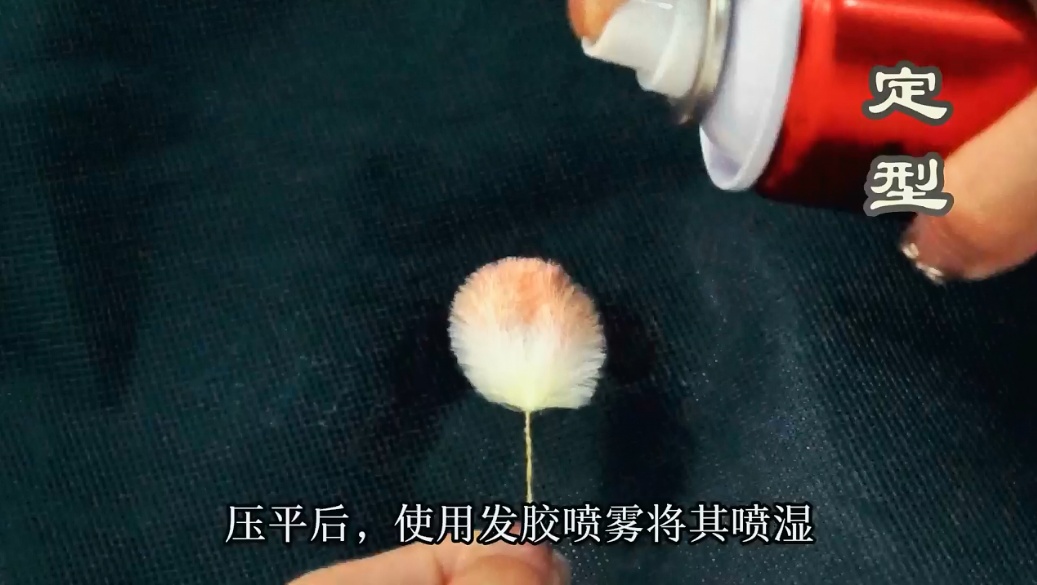 :压平后,使用发胶喷雾将其喷湿。