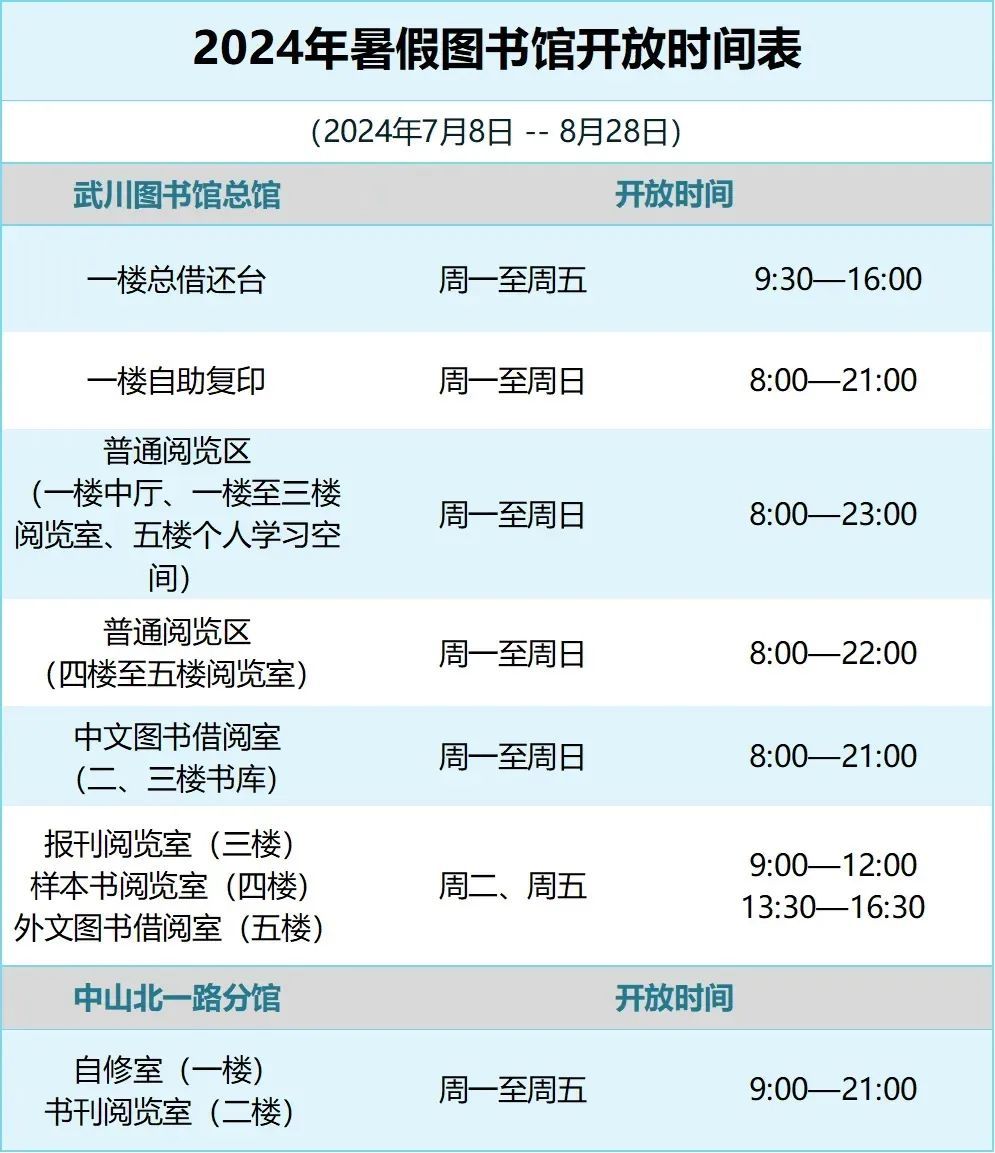 为服务校内外师生读者,上海财经大学图书馆365天保持开放,假期期间不同区域开放时间如下图: