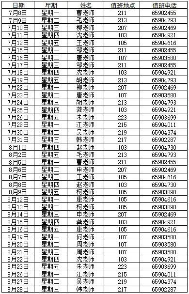 如需办理其他业务,请参考下列值班安排表,详询值班老师: