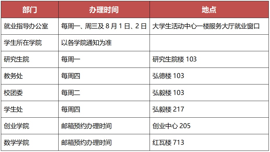 7月8日至8月28日暑假期间,招生就业处将在每周一、周三及必要时间为大家集中办理就业相关的各项手续。请提前1-2日扫码登记个人信息,便于为大家提供服务。
