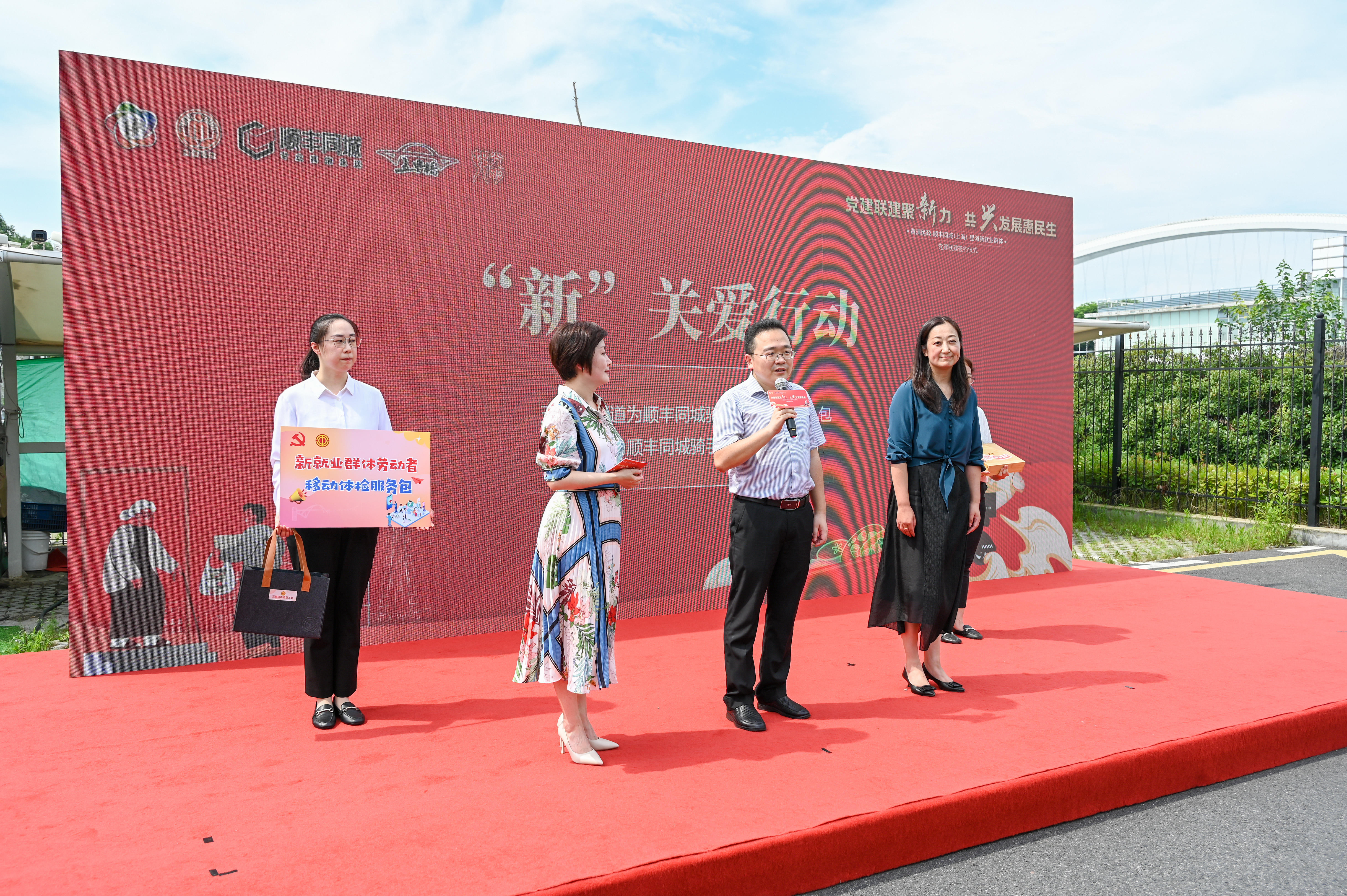 为了表达对新就业群体的关心关爱,五里桥街道为顺丰同城里滩站点和外滩站点的骑手免费赠送移动体检服务包和夏令清凉礼包,光明邨也承诺向每位参与助老餐送餐服务的骑手免费提供爱心餐。